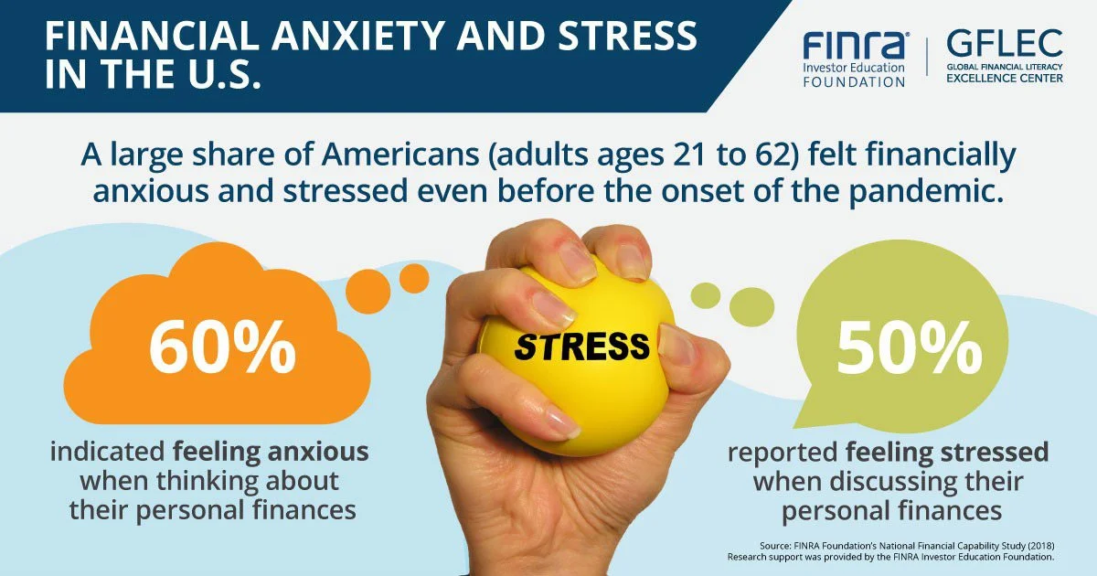A lack of financial literacy hurts more than just pocketbooks. It impacts us physically and mentally as well. A recent FINRA study found 60 percent of Americans are anxious about their personal finances, with 50 percent feeling stressed just talking about it.