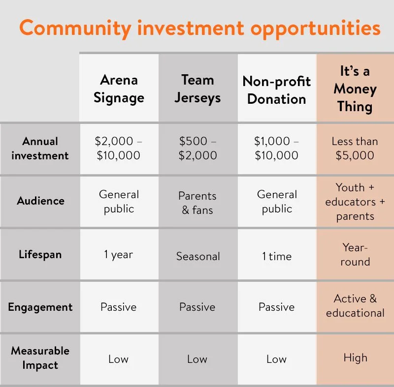 It’s easy to see how an investment in financial education—something with broad, long-term impact—stacks up against more traditional community contributions. Jerseys, signage and sponsorships absolutely play a role in community building. But when you're spending member dollars, return on investment has to factor in.