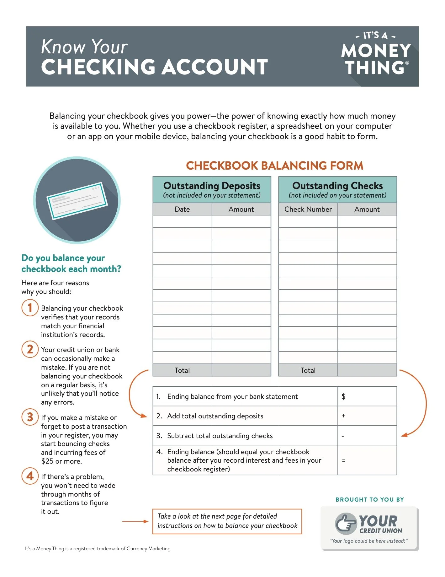 Start by recording all your checking account transactions in your checkbook register—debit card payments, checks written and received, and ATM withdrawals. Include online bill payments and direct deposits too—since those are sometimes automated, it can be easy to forget them. When you get your monthly statement, compare each transaction to your checkbook register and put a checkmark next to each transaction that matches your statement. If items in your statement do not match your checkbook register, figure out what’s at cause. Sometimes it’s an entry error or a slip-up in your math, but it could be an error by your financial institution.