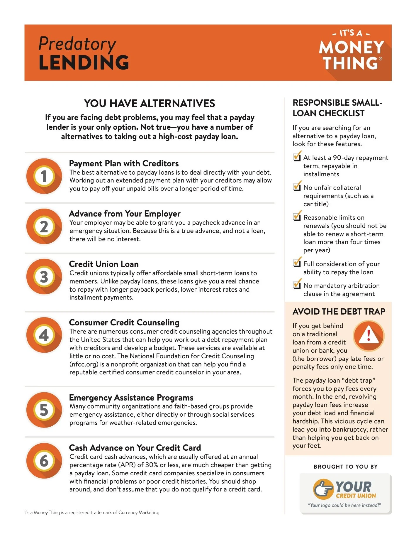 If you are facing debt problems, you may feel that these types of lenders are your only option. Not true—you have a number of alternatives to taking out a high-cost loan: