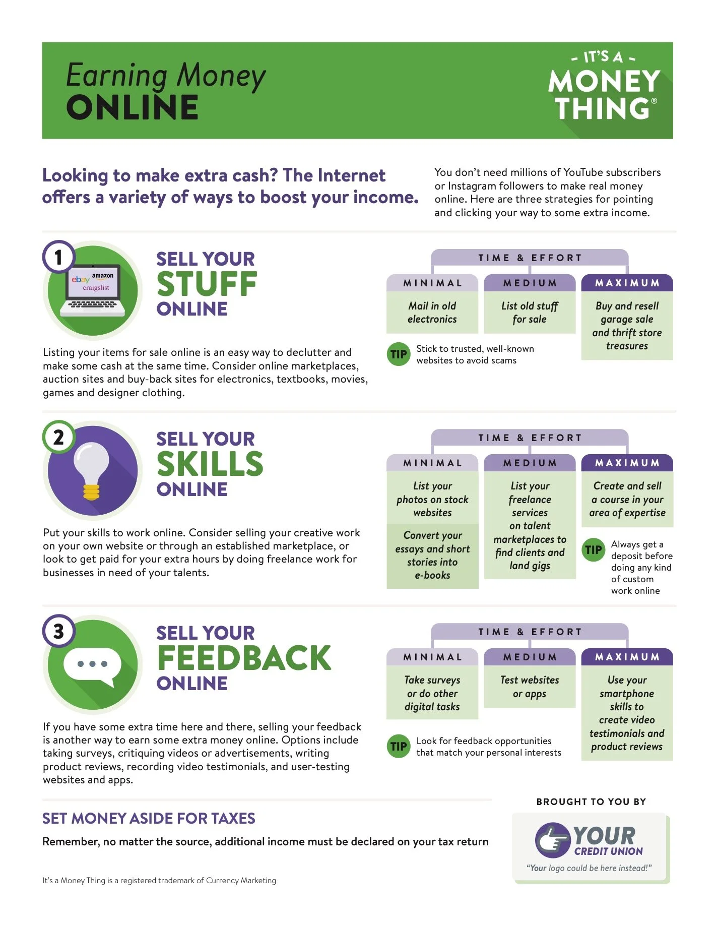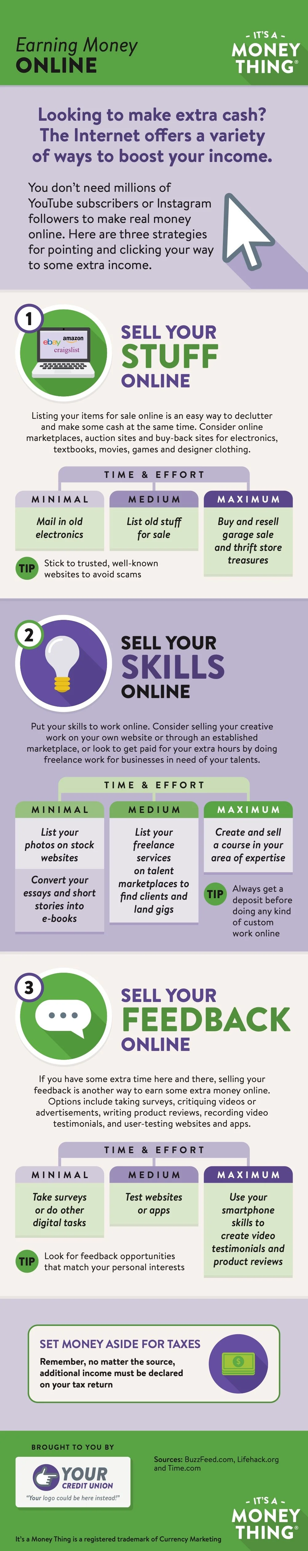 While some of us dream of a wildly successful Internet career, the rest of us are happy to settle for online earnings that are a little more modest. Thousands of money-making opportunities are just a web search away. Whether you’re selling your old stuff, scoping out freelance opportunities or running your own digital storefront, there are tools and resources to help you along every step of the way.