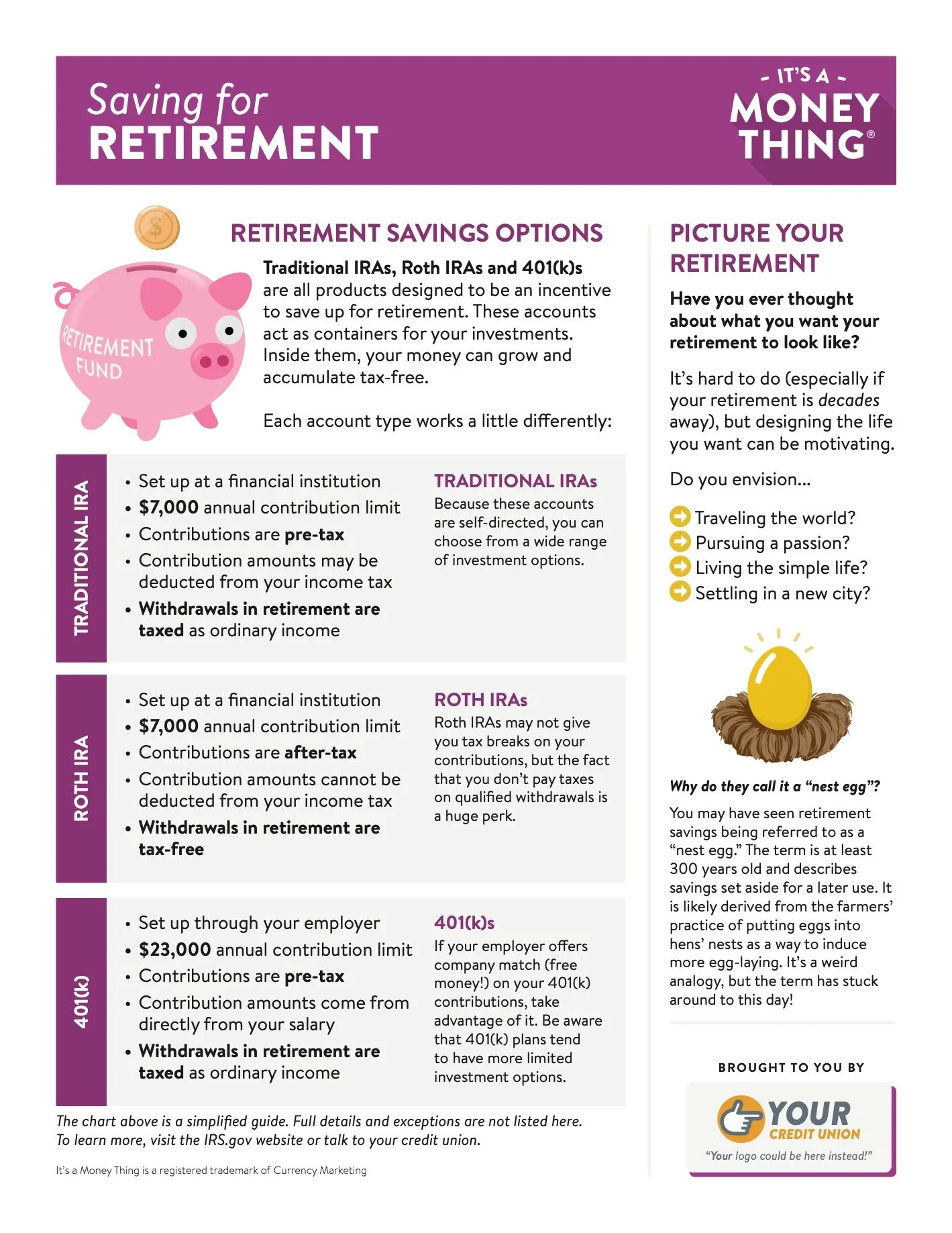 The materials in this content pack serve as a basic introduction to common retirement savings products and are an excellent way to get the conversation started about long-term savings goals