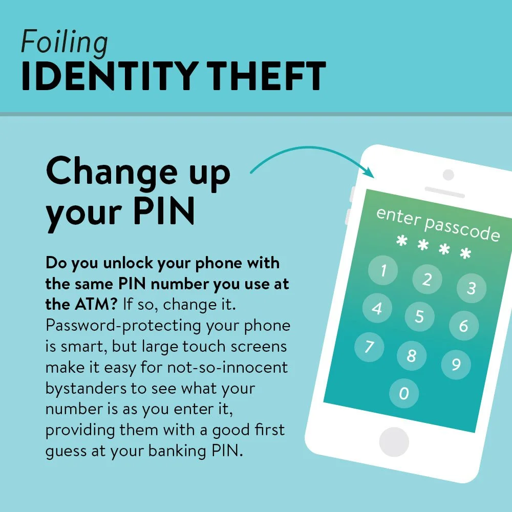 Change up your PIN, especially if you use the same combination for your debit card and for unlocking your cellphone.
