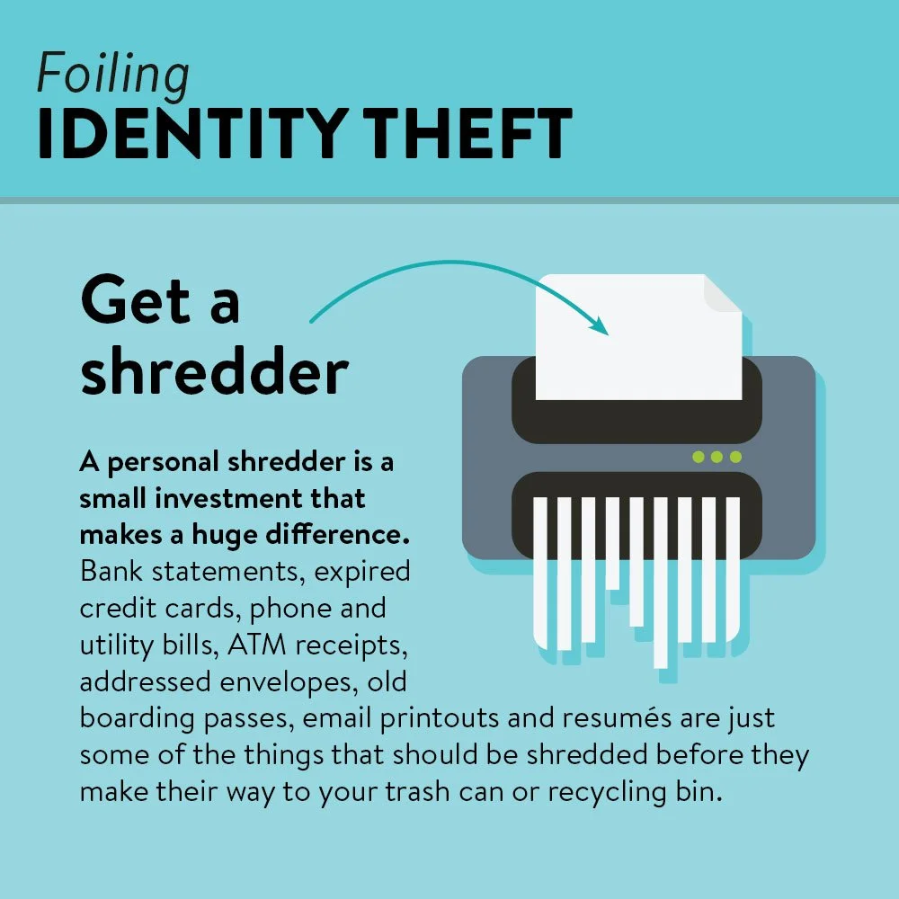 Get into the habit of shredding things before throwing them out, especially things like bank statements, expired credit cards, utility bills, cellphone bills, paycheck stubs, old boarding passes and travel itineraries, and ATM receipts.