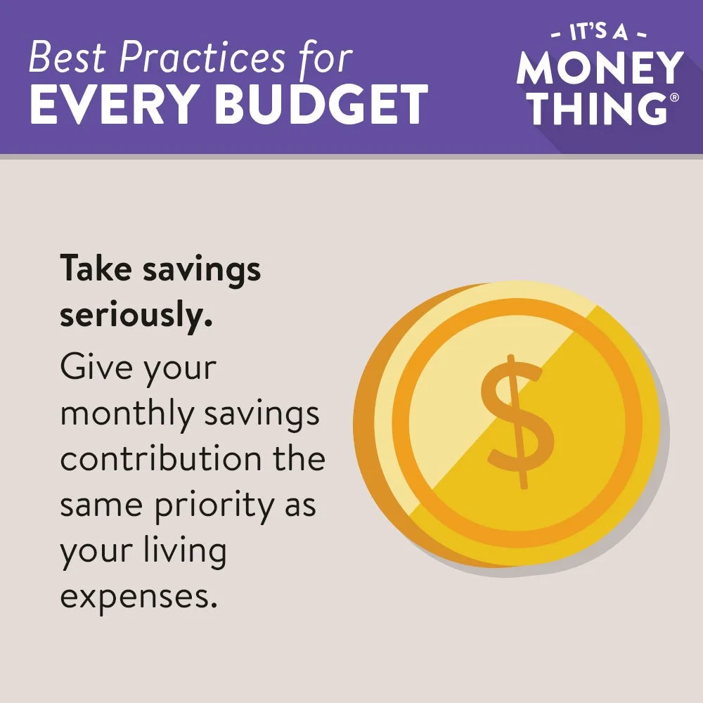 If budgeting categories were a high school gym class, savings would be picked last. In many budgets, the savings category ends up getting whatever is left over after the “more urgent” expenses have been paid (and—in most cases—the not-so-urgent ones too!). The only way to take your savings seriously is to give it the same priority as your living expenses. If you contribute a set amount to your savings at the beginning of the month, your savings will grow so much faster and you won’t be able to “accidentally” spend that money on something else.
